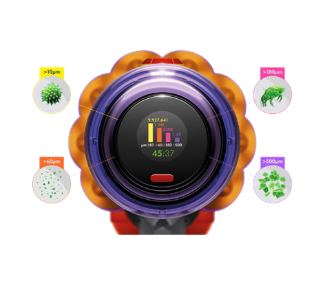 Güçlü Dyson HyperdymiumTM motor, toz hacminde artış belirlendiğinde emiş gücünü arttırır.